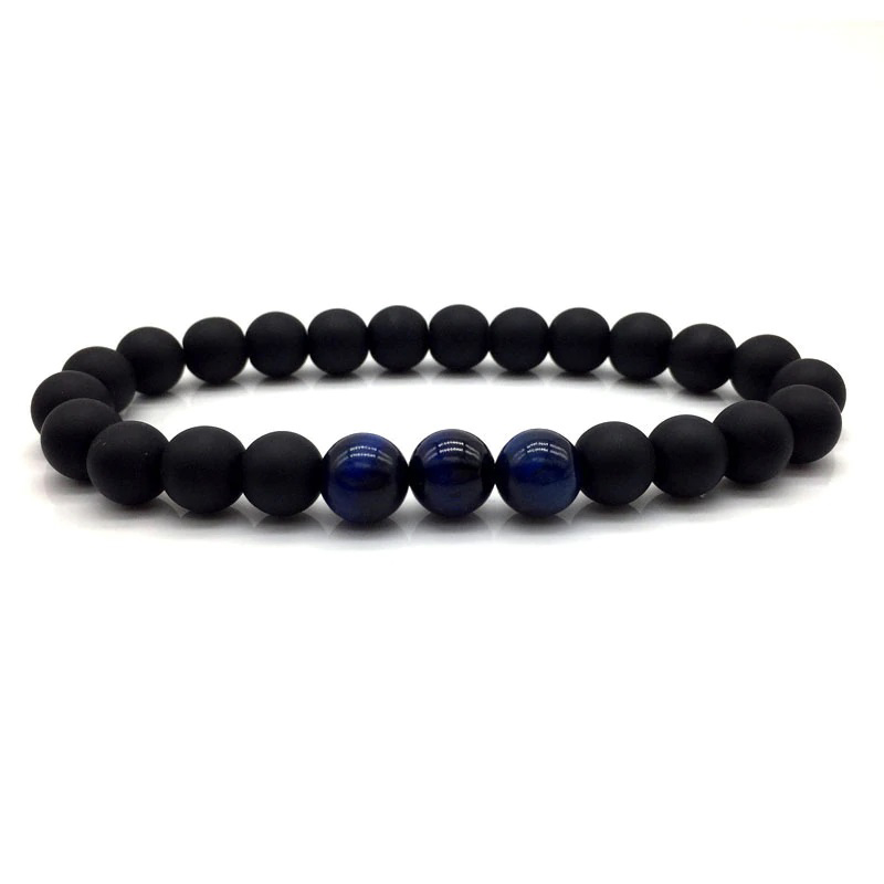 Blue Tiger Eye is a stone with a soothing capabilities. It can reduce your stress and ease your anxieties. Also, it increase your calm and relaxation. And Onyx Stone prevents the drain of personal energy.