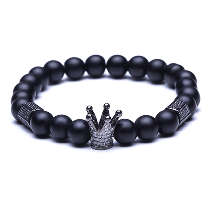 Crown Charm Stretch Bracelet Matte Black Onyx Beaded – Thomas Image Consulting
