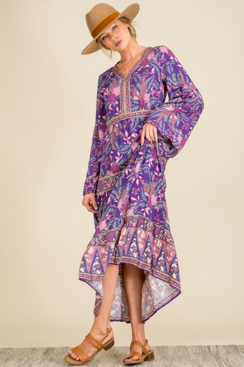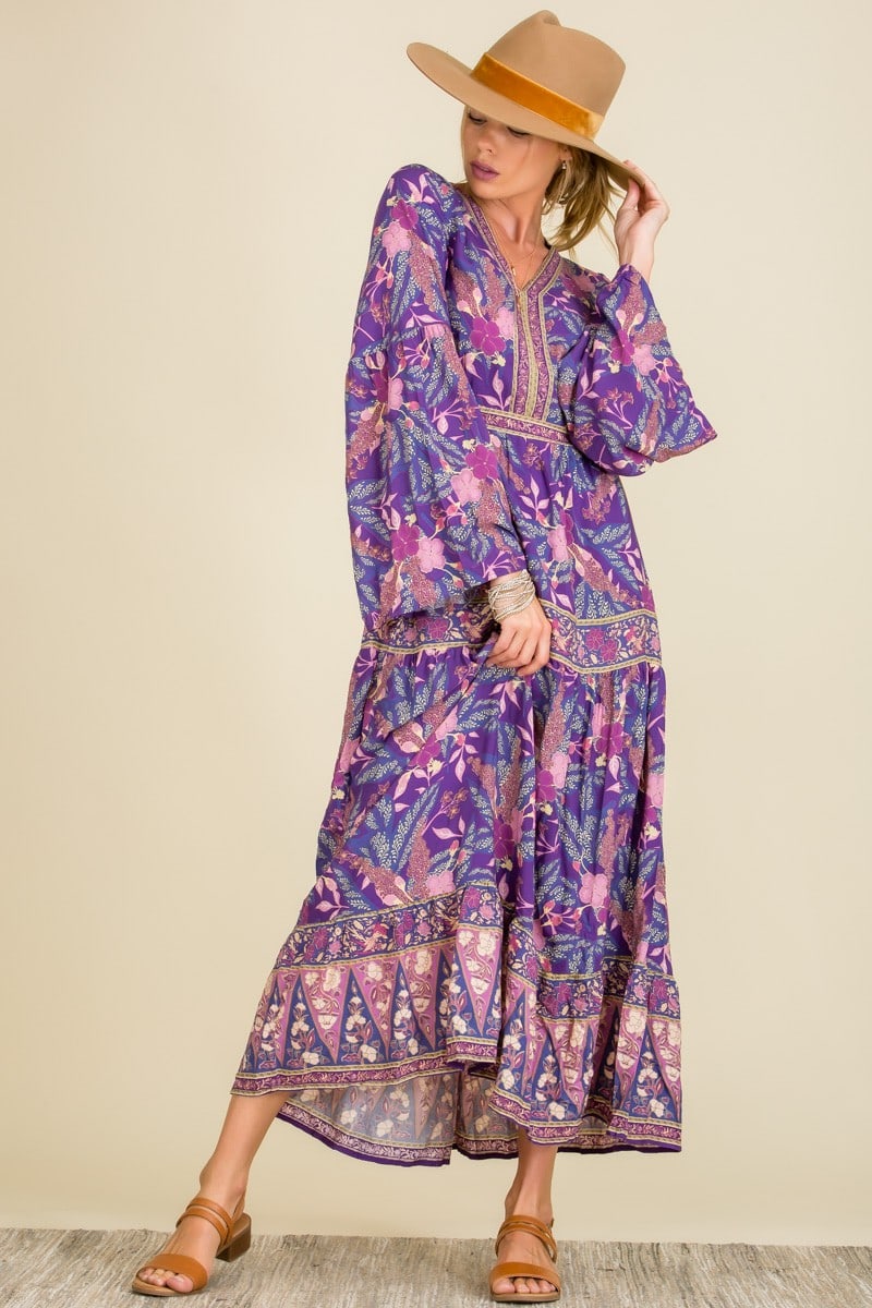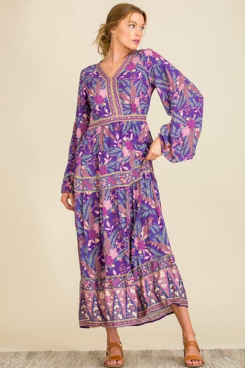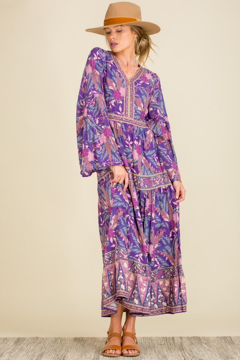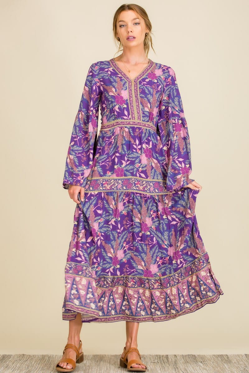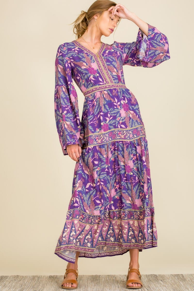 Tiered Off Shoulder Ruffled Tie Dye Maxi Dress
