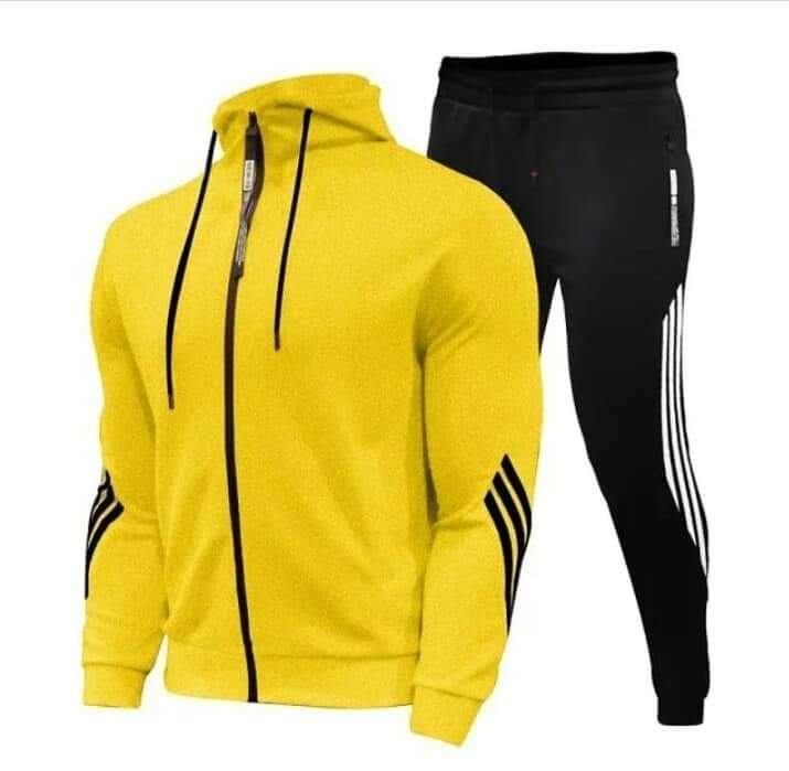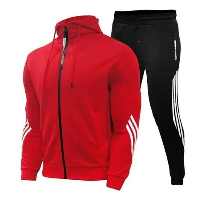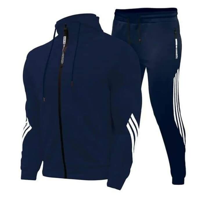 Relax in style. With this Thomas Image jogging suit while recovering after a workout or heading out with friends. The Stripes make a sporty statement.