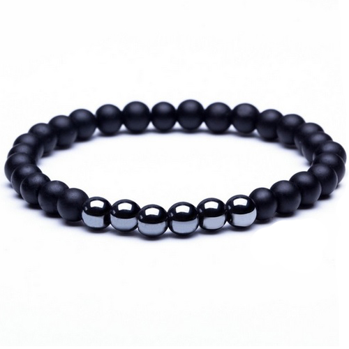 Men’s Beaded Stretch Bracelet Hematite Matte Black Onyx