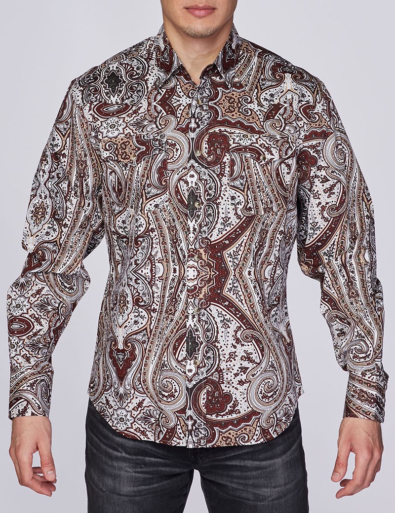 PS100L Men’s Western Tone Long Sleeve Printed Shirt
