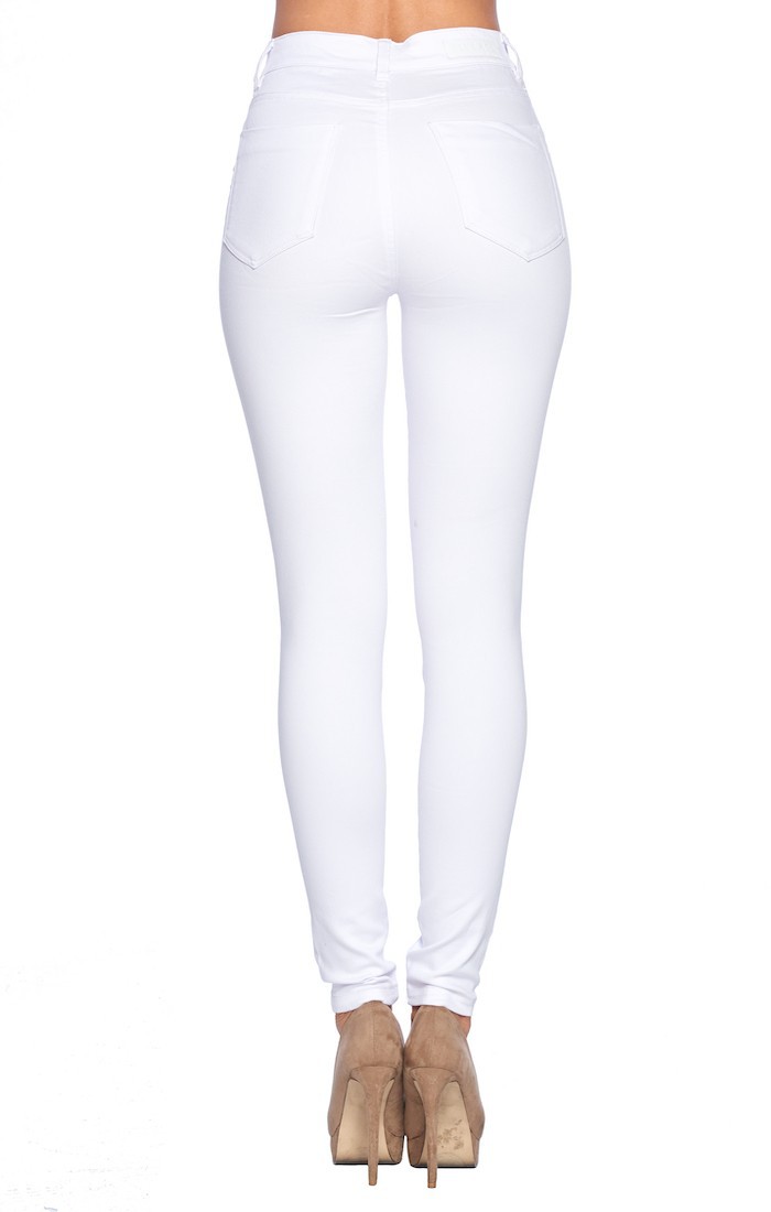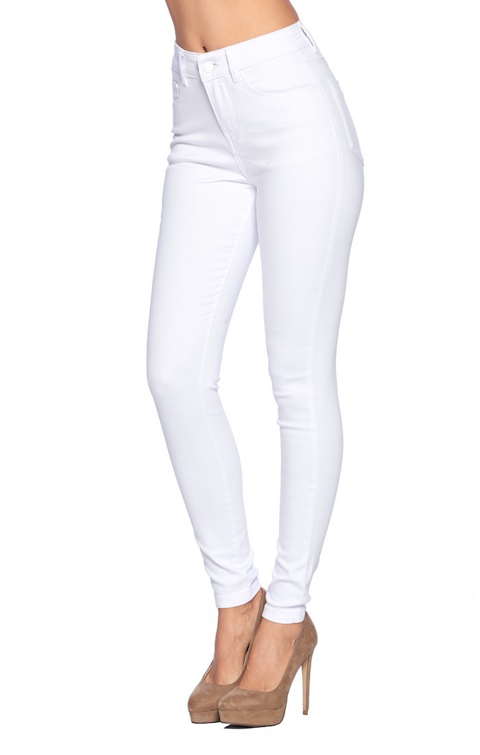 SOLID HIGH WAIST WHITE DENIM JEANS – WOMENS YOUNG CONTEMPORARY FIT PREMIUM JEANS