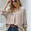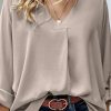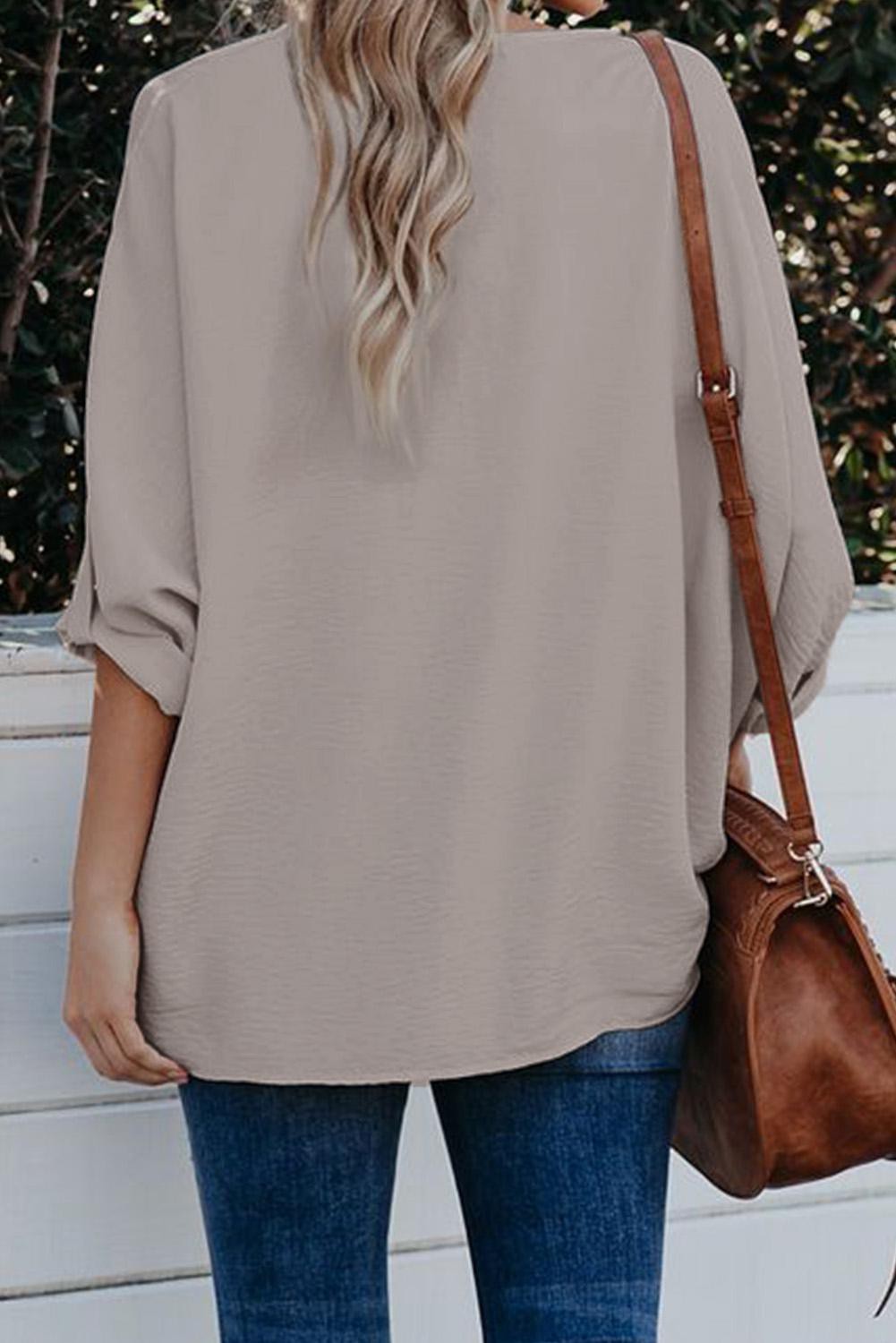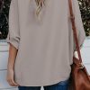 V Neck Women Classic Basic Bat Sleeve Long Sleeve Baggy Retro Casual Oversized Blouse