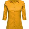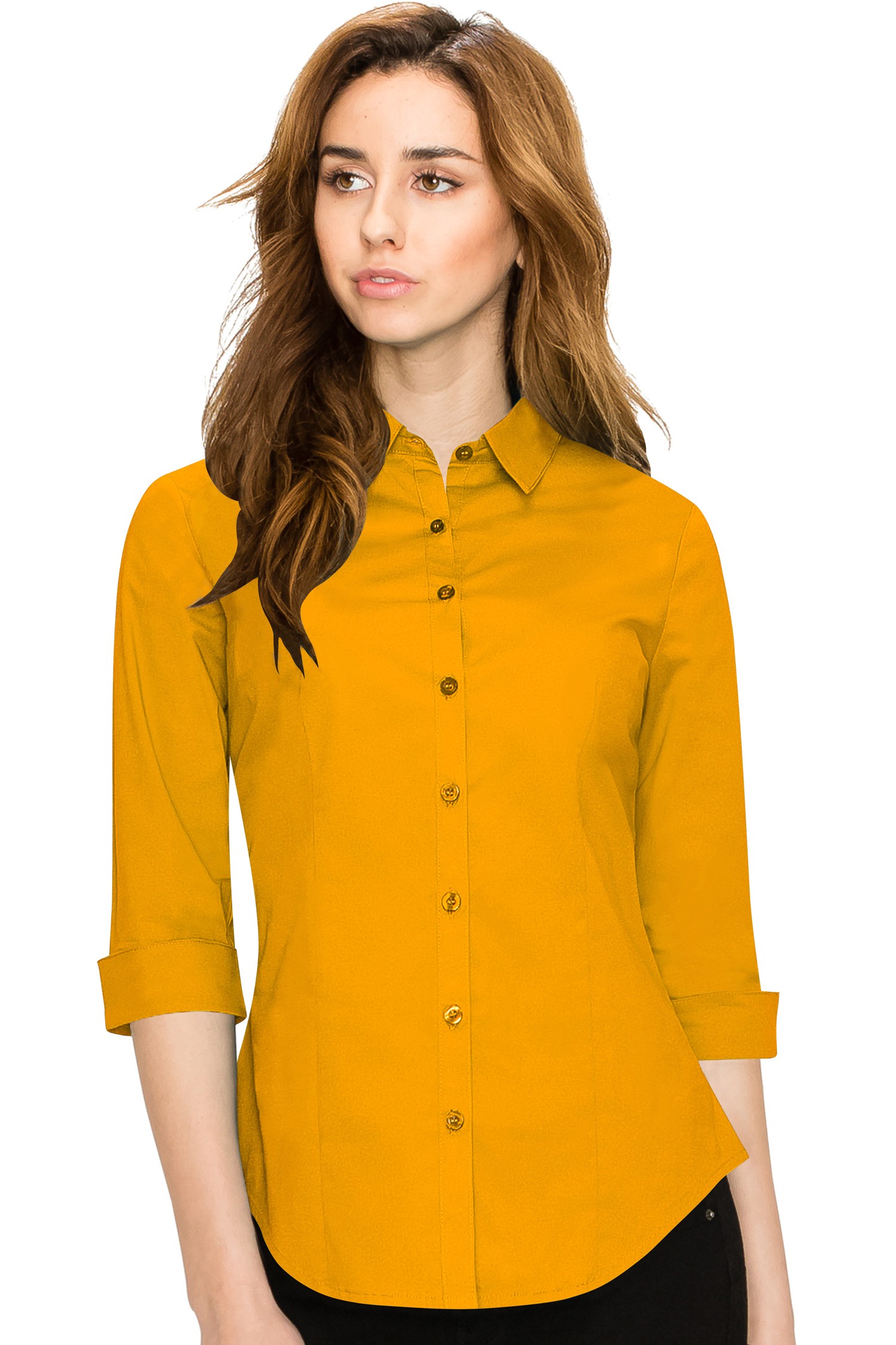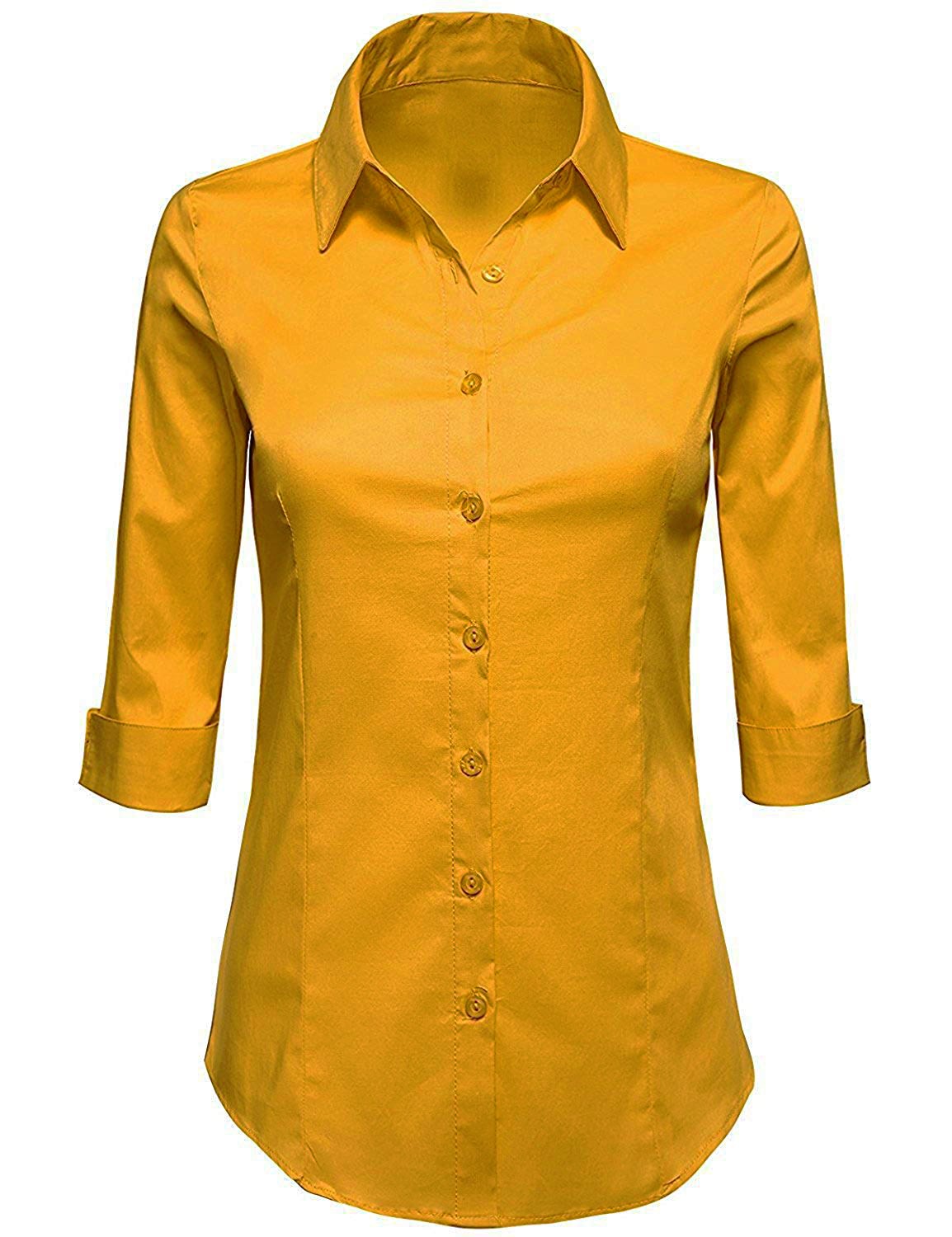 Women’s Premium 3/4 Sleeve Stretchy Tailored Button Down Office Formal Casual Blouse Shirts Top
